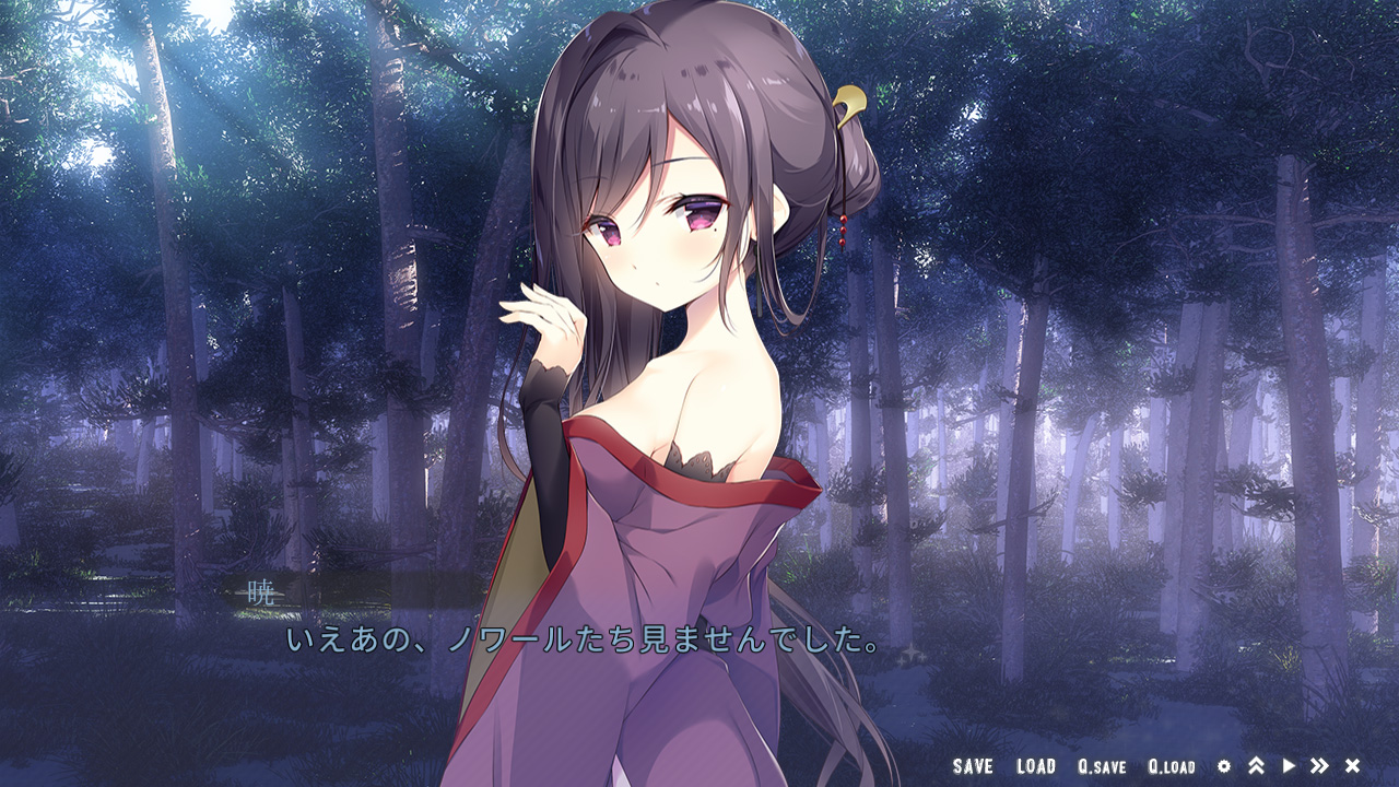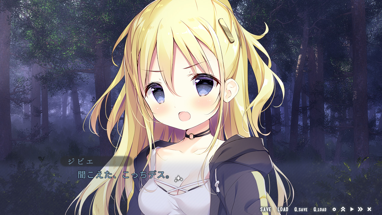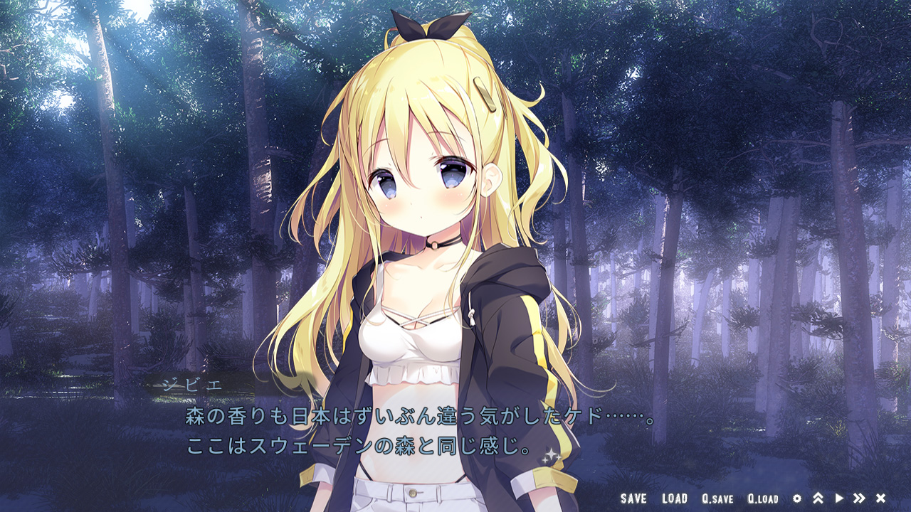 後半は車内から外へと舞台が移ります。途中の駅で休憩するため下車して森を散策するのですが、ここで事件が発生!! 何とノワールとカルハが行方不明に!? 幸い無事に発見されますが、どうも奇妙な出来事に巻き込まれていた様子です。その後、主人公も森の中で謎の声を聞いたりと何やら不思議要素の気配が…? 普通に美少女たちと旅するだけかと思いきや、ストーリー的にも気になる展開になってきたところで、体験版は終了となります。