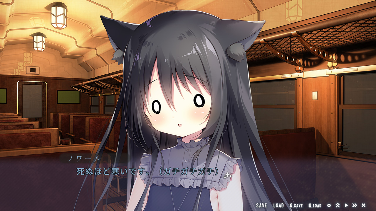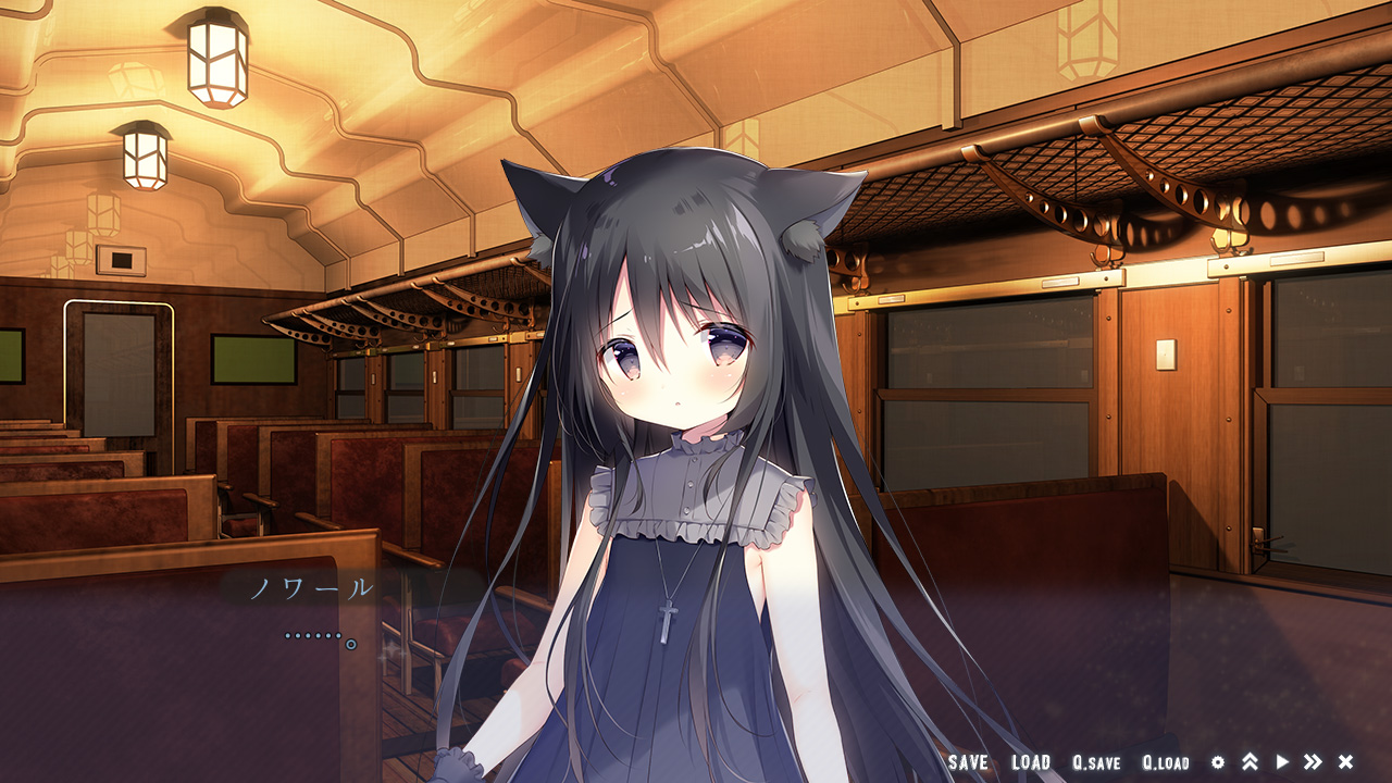 中盤は他の乗客たち…特にノワールとの交流がメインという感じです。最初は警戒されまくりでしたが、色々あって仲良くなります。何だか野良猫に懐かれたみたいで、妙な嬉しさがこみあげて来ますよ♪ 他の乗客たちとも会話をして人となりと知ることができ、いよいよ物語が動き始めたって感じです。また、ちょくちょく主人公が夢を見るのですが、その中に出て来る謎の少女・ねりの存在も気になるところですね…。