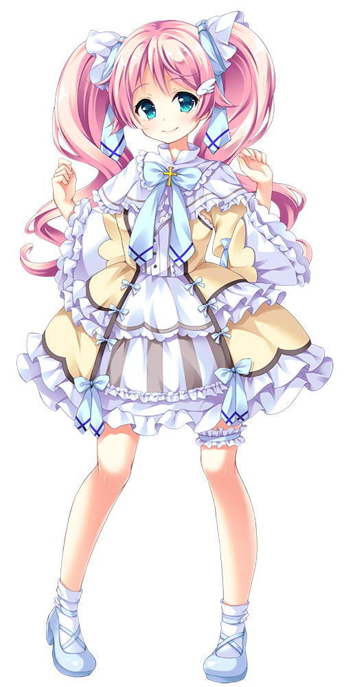 天真爛漫だが、天使というにはフランクすぎる少女。ルシエラたちのお目付け役として彼女たちと一緒に人間界に来たので、事あるごとに彼女たちのマウントを取ろうとするが、そそっかしい性格が災いしてなかなかうまくいかない。