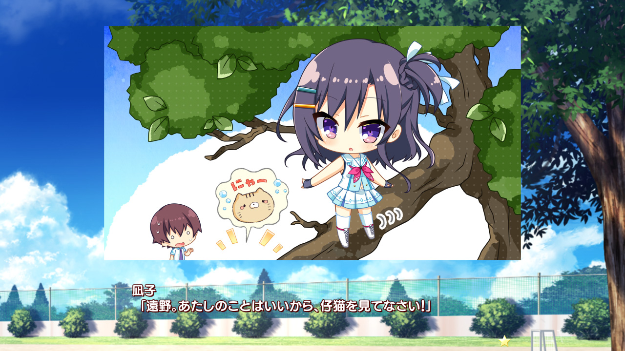 妹分である響の涙(ウソ泣きだけど)で主人公に詰め寄ったりと、凪子は男気溢れる性格をしています。そんな姉御肌なところも魅力ではありますが、時おり見せる乙女な部分にも注目ですよ!! 例えば木の上に登って降りれなくなった子猫を助ける際に、下から見守る主人公がスカートを覗いていないか気にしたり。あと他ヒロインの口車に乗せられ、お弁当に「もえもえキュン♪」するシーンなんか可愛すぎて見ていて悶えちゃいますよ!!