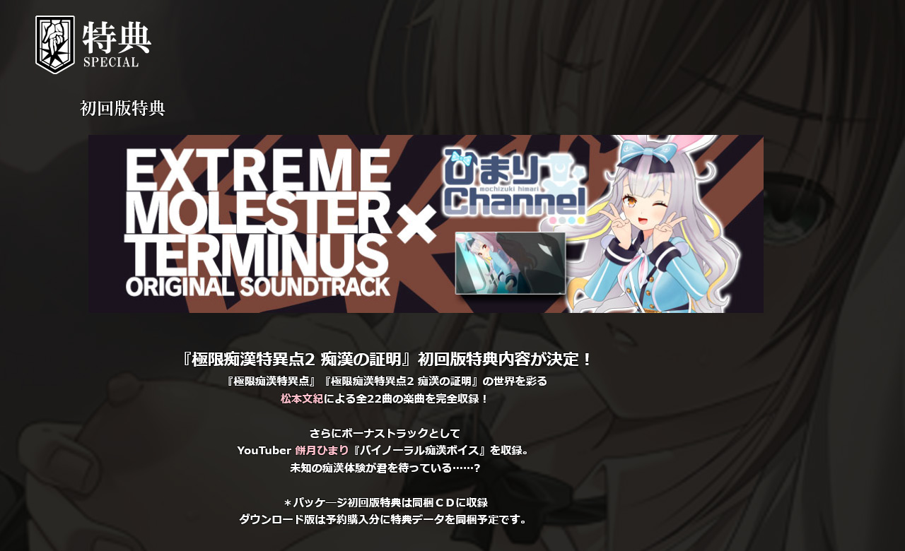 ▲初回特典にはCDが付属し、全22曲の楽曲とYouTuber・餅月ひまり『バイノーラル痴漢ボイス』が収録!!