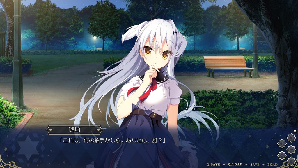 ▲夜の公園で一人芝居をする少女・琥珀の才能を見てスカウトしようとする主人公