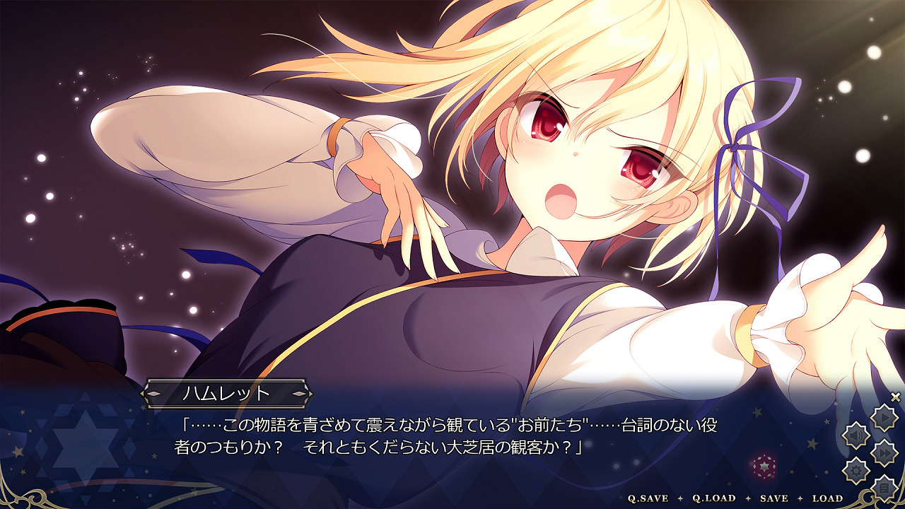 ▲演劇がテーマなので劇中劇のシーンが結構あり。これはハムレットを演じるヒロインが観客に語り掛ける一幕