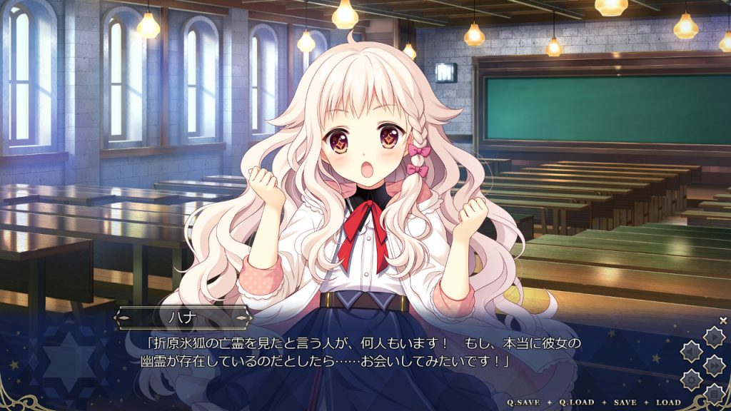 ▲天才女優・氷狐の幽霊が出るという噂を聞き、目を輝かせる劇団仲間のハナ