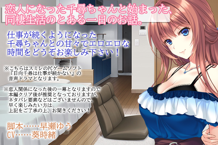 本編『日向千尋は仕事が続かない』クリア後の最高にハッピーな恋人関係を描くFANZA GAMES独占販売の音声ドラマを超お買い得価格でGETしちゃおう♪