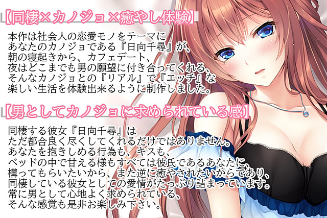 ▲カノジョである日向千尋との“リアル”で“エッチ”な楽しくも癒されるイチャエロ生活がたっぷり堪能できるぞ♪