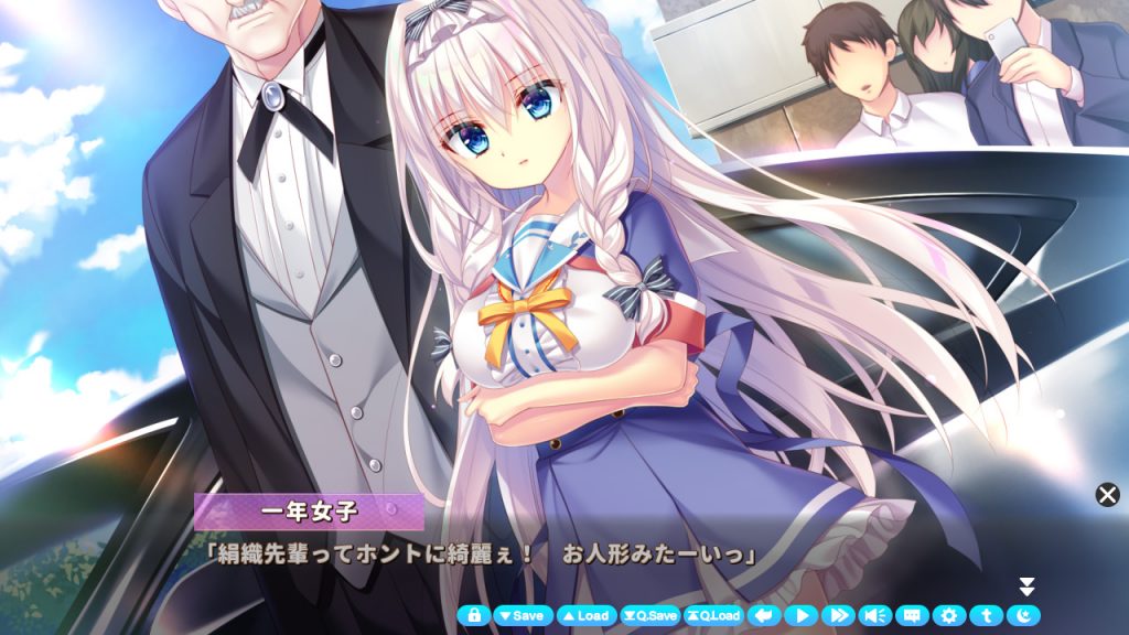 ▲学園に登校すると学園の人気者である先輩・双鳩と遭遇。皆の前ではお嬢様っぽいけど…