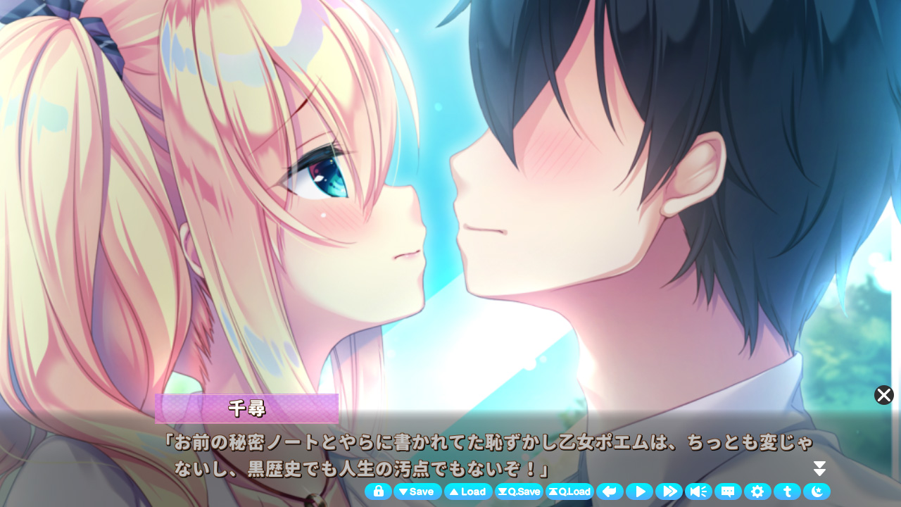 ▲見つめ合う二人…ラブなシーンに見えるけど、実際は紗祈のポエムノートを見てしまった現場だったりする