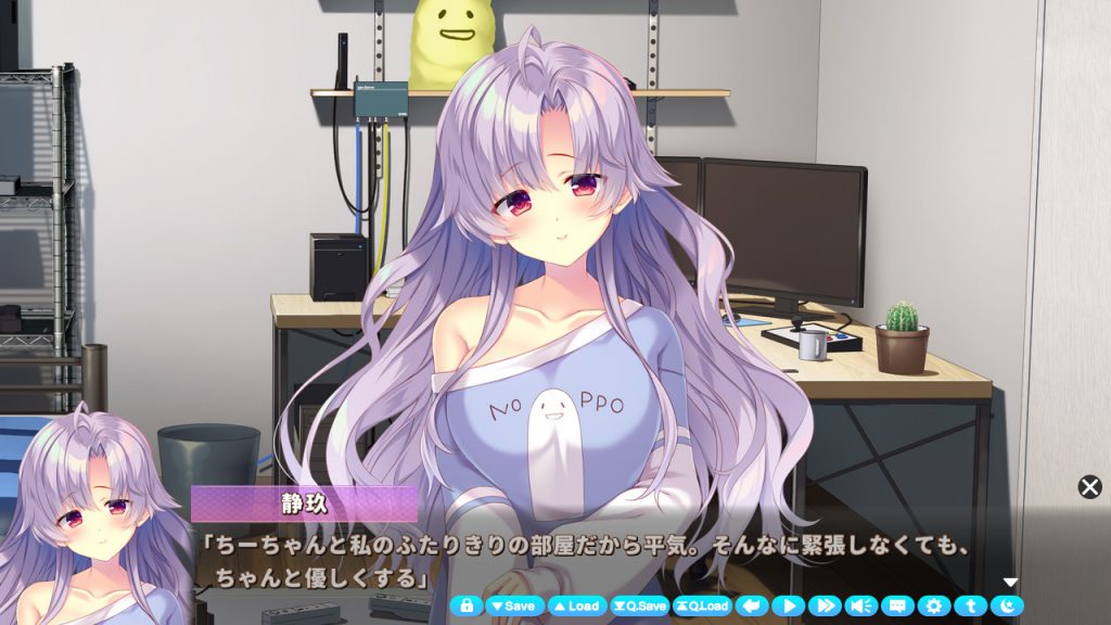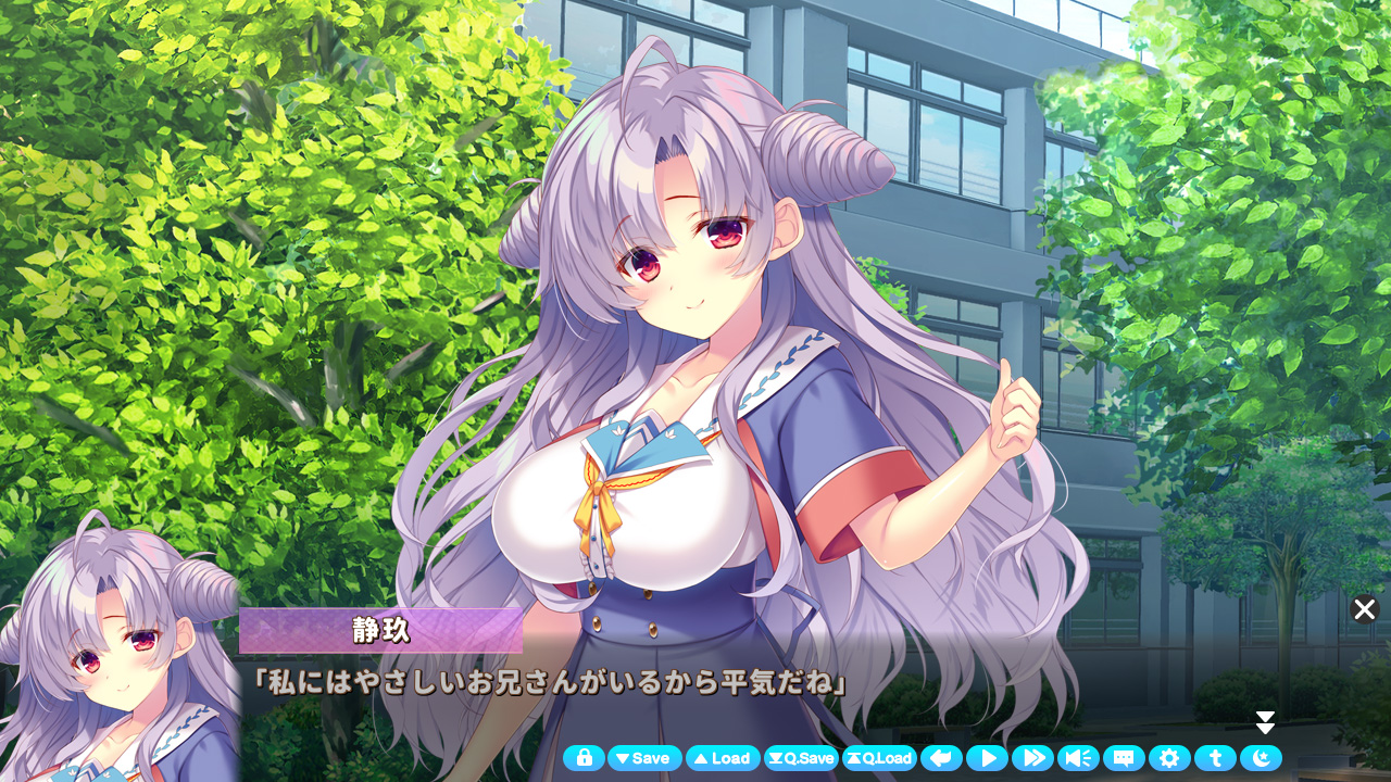 主人公の従妹である静玖は、最初から好感度が高めです。それが恋だと自覚はしていないようですが、他ヒロインと一緒にいる主人公を見て、胸の奥に痛みを覚えたり密かに対抗意識を燃やしたりも。でもデートするのがネットゲーム内だったり、少しズレている感じが…そんなところも可愛いんですが♪ あと基本的に物静かな性格ですが、慕っている主人公がコワモテ顔のことで他人から悪く言われると怒るところにグッと来ましたね!!