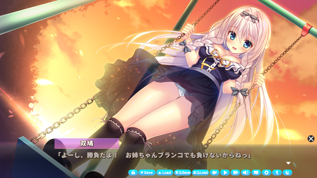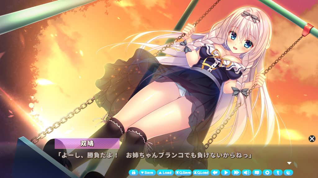 双鳩は人気モデルだけあって非常に愛らしい外見をしています。なのでパッと見だと年下っぽいのですが、年上ヒロインでセンパイ風を吹かせたがるのが可愛いですね。また皆の前ではお嬢様然とした態度なのに、主人公には冗談を言ったりからかったりと小悪魔チック。それが心を許した相手だけに見せる姿って感じで、男心をくすぐるんですよ♪ 何だかんだ主人公が困ったときは助けてくれますし、頼れるお姉ちゃんキャラは良いですね…甘えたい!!