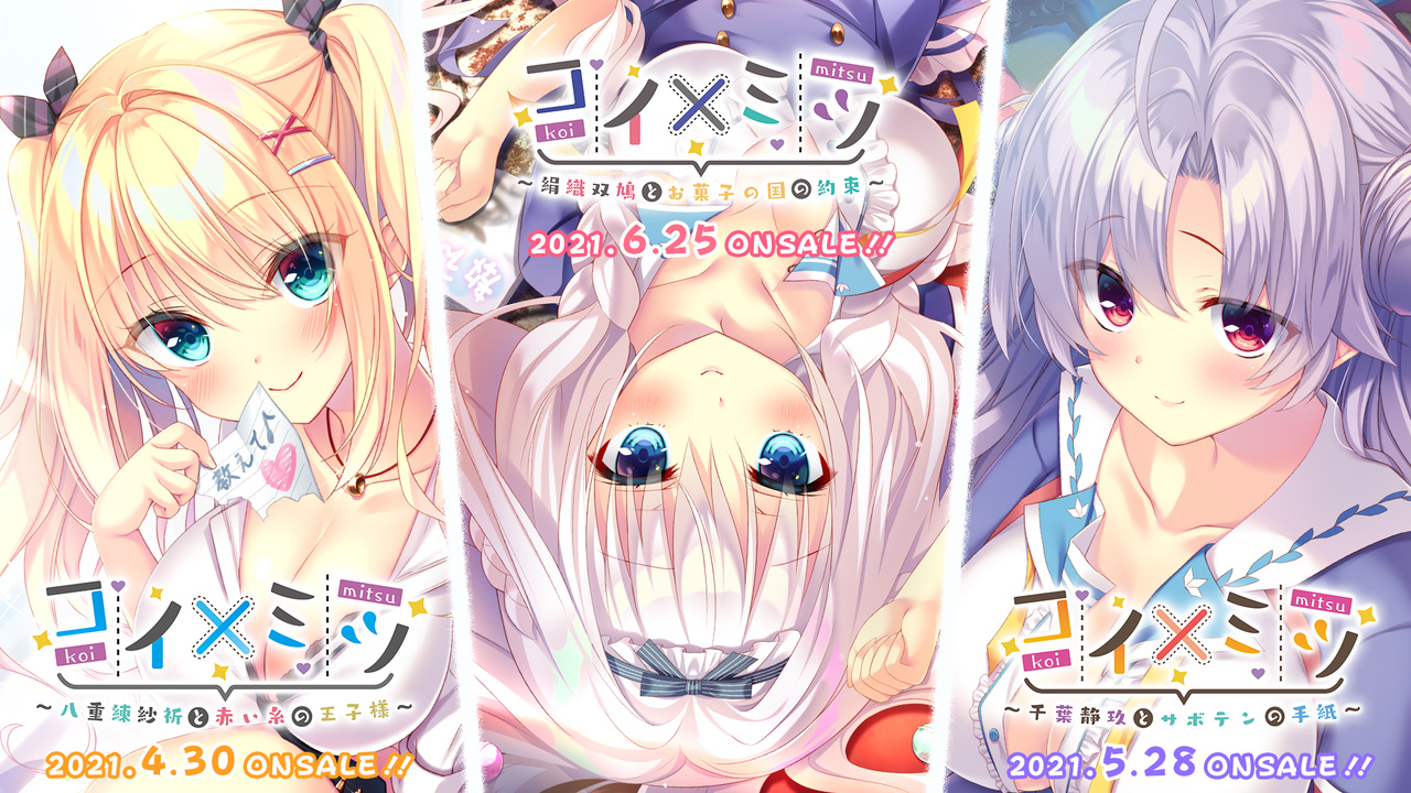 2017年に発売された『あぶのーまるらば~ず』でデビューしたブランド・とるてそふとから、久々となる新作が登場しますよ。しかも何と3ヶ月連続で発売するというのだから驚きです!! ちなみに別作品を3本出すのではなく、1作品から3人のヒロインルートを個別に発売する形となっております。ミツのように甘い恋愛ストーリーのようですが、それでは気になる内容の方を体験版でチェックしてみましょう!!