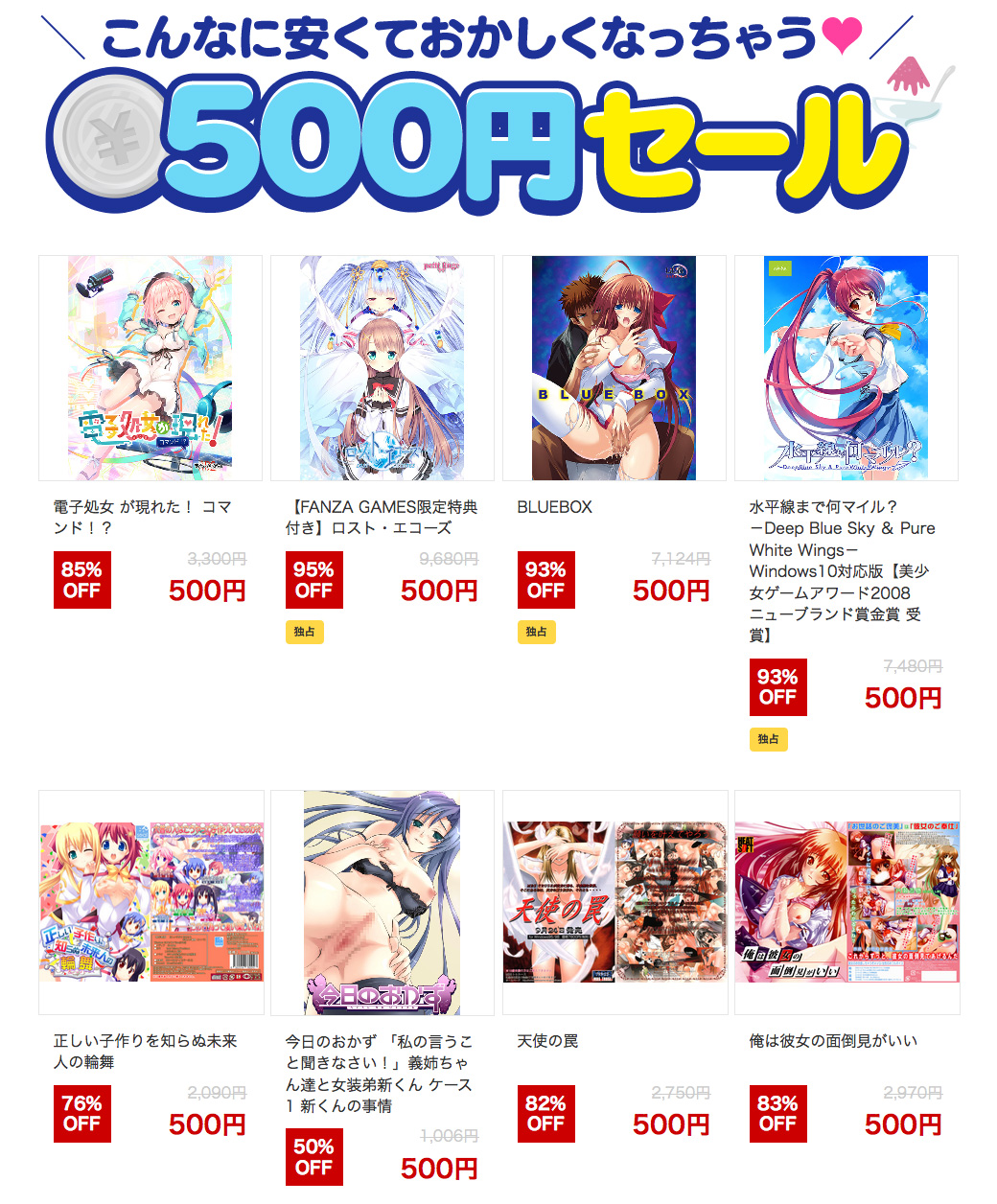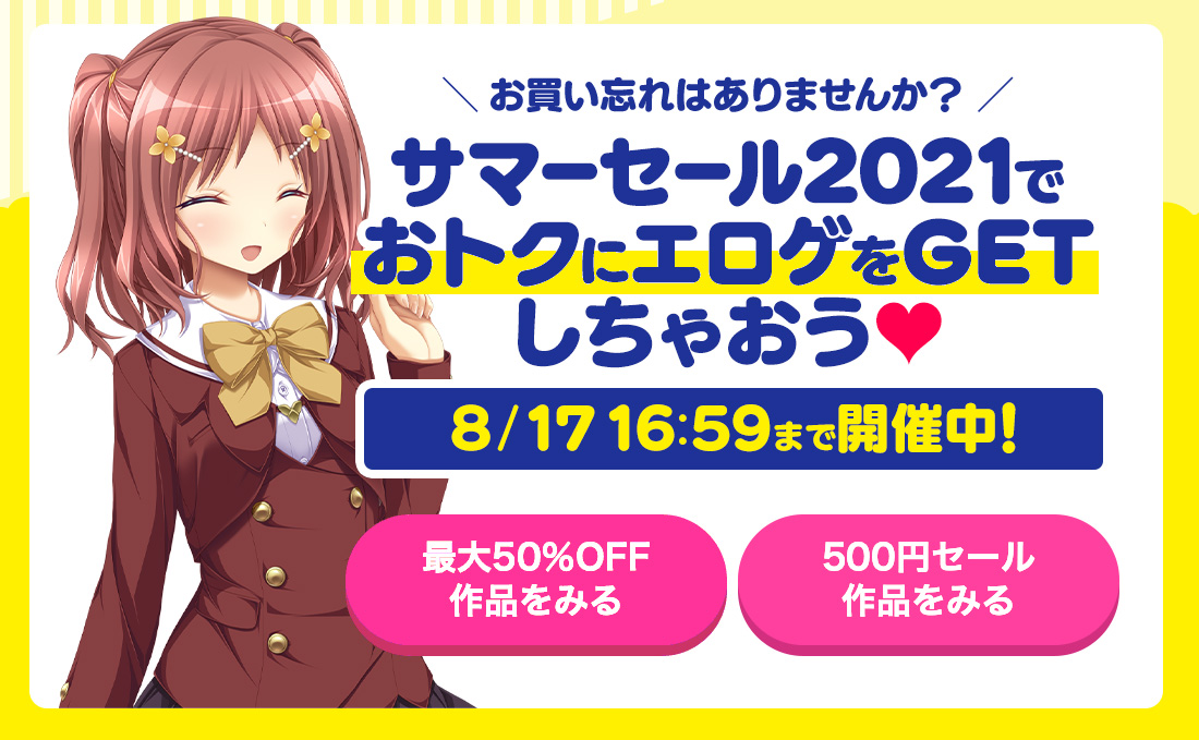 まだ間に合う!! ワンコインや50%OFFなど美少女ゲームをお得にGETできるこの夏のラストチャンス!!