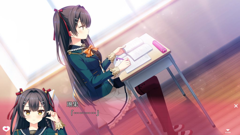 ▲そんなクラス中が突然の転校生に沸き立つ中、ただひとり無関心で勉強をしている琳果