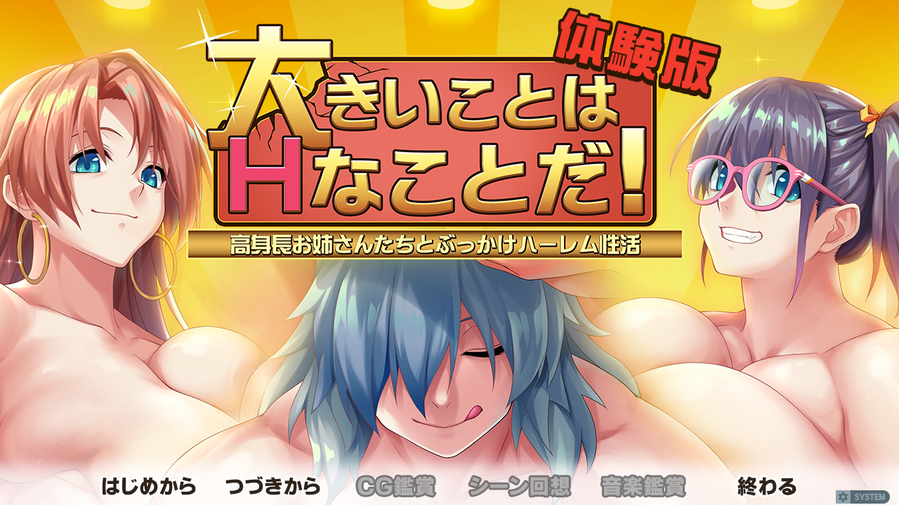 お姉さんヒロインの作品を多くリリースしているアトリエかぐやの最新作は身体の大きな女性、いわゆる“巨女”にスポットを当てたハーレム系AVGです。シナリオと原画を有栖川千里氏が務めており、こだわり溢れる肉感的なボディは見るものを圧倒させます!! ヒロインの姿を一度見たら忘れられない…そんな衝撃的な本作を、体験版から内容をチェックしてみますよ!! さて大きなお姉さんたちとのハーレムとは、どんなものなのでしょうか?