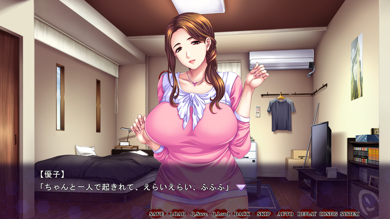 ▲主人公が住むアパートの大家・優子(ゆうこ)。母性的かつ甘やかし体質なので食事や洗濯など主人公の世話を焼いてしまう