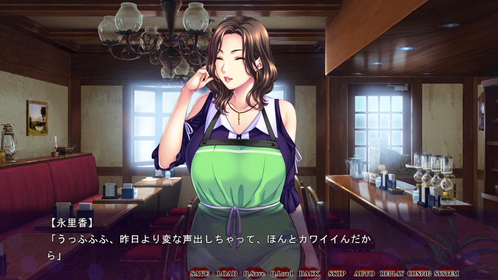 ▲耳に息を吹きかけて主人公の反応を楽しむ喫茶店のオーナーさん。年上の女性にからかわれるのもイイ!!