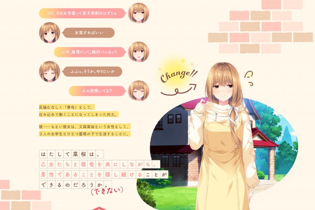 ensembleの姉妹ブランド・ensemble SWEETから、最新作の情報が到着!! スランプ中の百合小説家が担当編集の提案で、インスピレーションを得るため女装して女子寮の寮母に就任するというストーリーの作品なのだ。ヒロインとなるのは、個性的な3人の女生徒。彼女たちと主人公がひとつ屋根の下で暮らすうち、どんな関係性を築いていくのかに注目したい。そこで今回はオープンしたばかりのオフィシャルサイトの情報を中心に、本作の見どころをチェックしていくぞ。