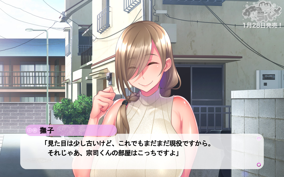 ▲年齢不詳の大家さん・撫子(なでしこ)。お淑やかな物腰の頼れるお姉さんだが、その豊満な身体で男の精を搾り尽くしたりも…?