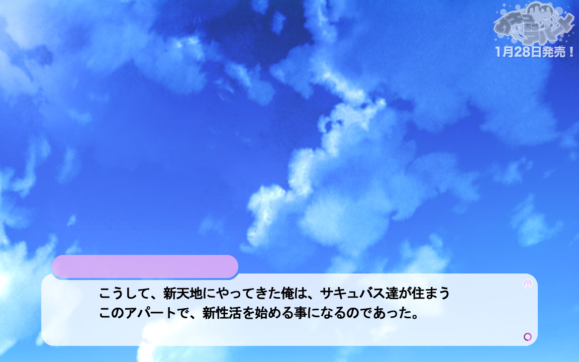 主人公は安さに釣られてボロアパートに入居するのですが、そこの住人は全員がサキュバスだった!? 何でも問題を抱えている落ちこぼれな彼女たちを、立派なサキュバスになれるようサポート…つまりHするのが主人公の役目だとか。そういう展開なので、ゲームを開始して早々にHシーンに突入しちゃいます。ヒロインとの交流なんかは後回しにして、まずHという…これは実用性が高そうですね!!