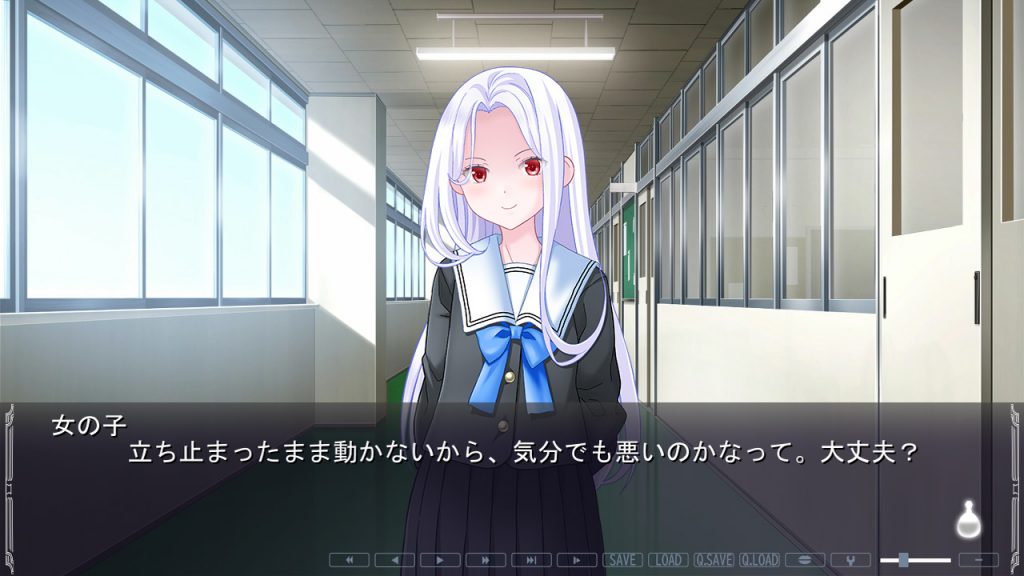 ▲見覚えのない美少女に遭遇。部活見学ってワケでもないみたいだけど、彼女はいったい何者なのか?