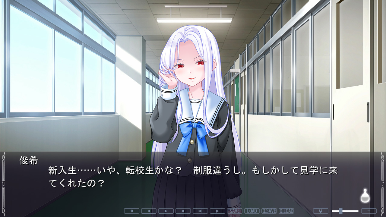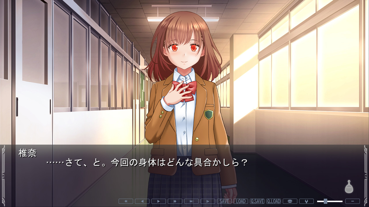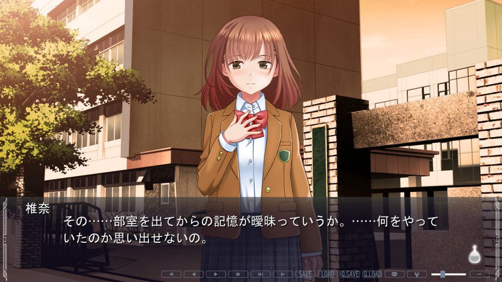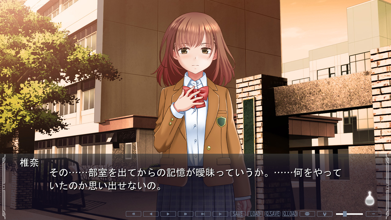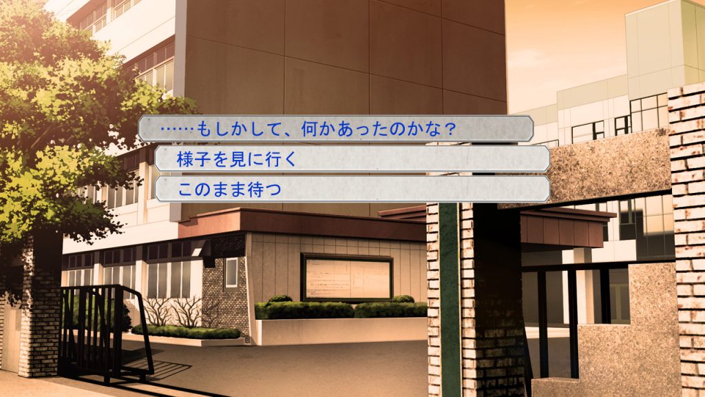 ▲一方そのころ、校門で椎奈を待っている主人公。ここで「様子を見に行く」を選ぶとバッドエンド行きなので注意!!