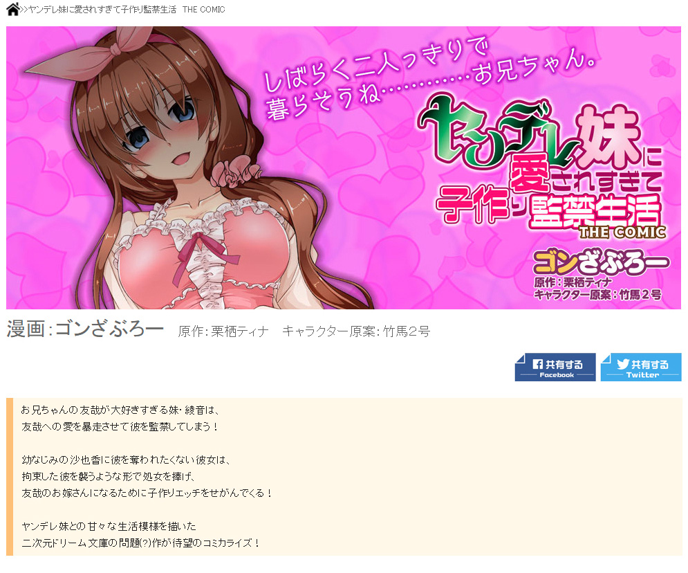 主人公・中田友哉と妹・綾音は、普段からとても仲が良い兄妹。だが、友哉は綾音のことを“妹だから”と甘やかし、何でも許してしまっていた。そんなある日、事件が発生!! お兄ちゃんのことが大好きすぎる綾音が暴走、彼を監禁してしまったのだ!! さらに、幼なじみの沙也加に兄を奪われたくない一心で、拘束した兄に逆レイプのような形で処女を捧げ…。はたして友哉はヤンデレ化した妹の愛を受け止められるのか!?