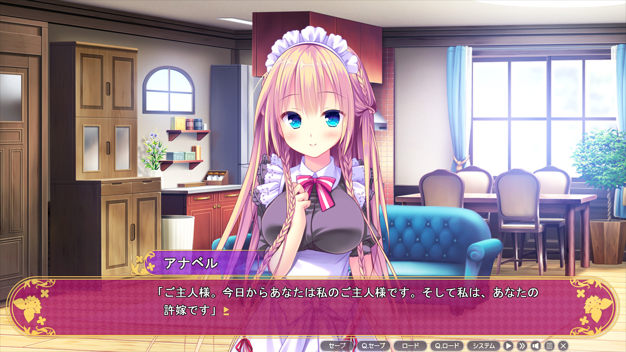 ある日、親から「実は許嫁がいるから挨拶に行け」と言われ指定場所に行くと、そこにはメイド服に身を包んだ幼なじみのアナベルがいて…という感じで早々に二人きりの同居生活がスタートします。メイドらしく献身的に世話を焼いてくれるのですが、何と風呂や寝るときも一緒に…? また主従関係ではありますが幼なじみでもあるので、子供の頃に一緒に見たアニメを鑑賞して盛り上がったり、そういう「幸せな日常風景」が凄く良いです!!