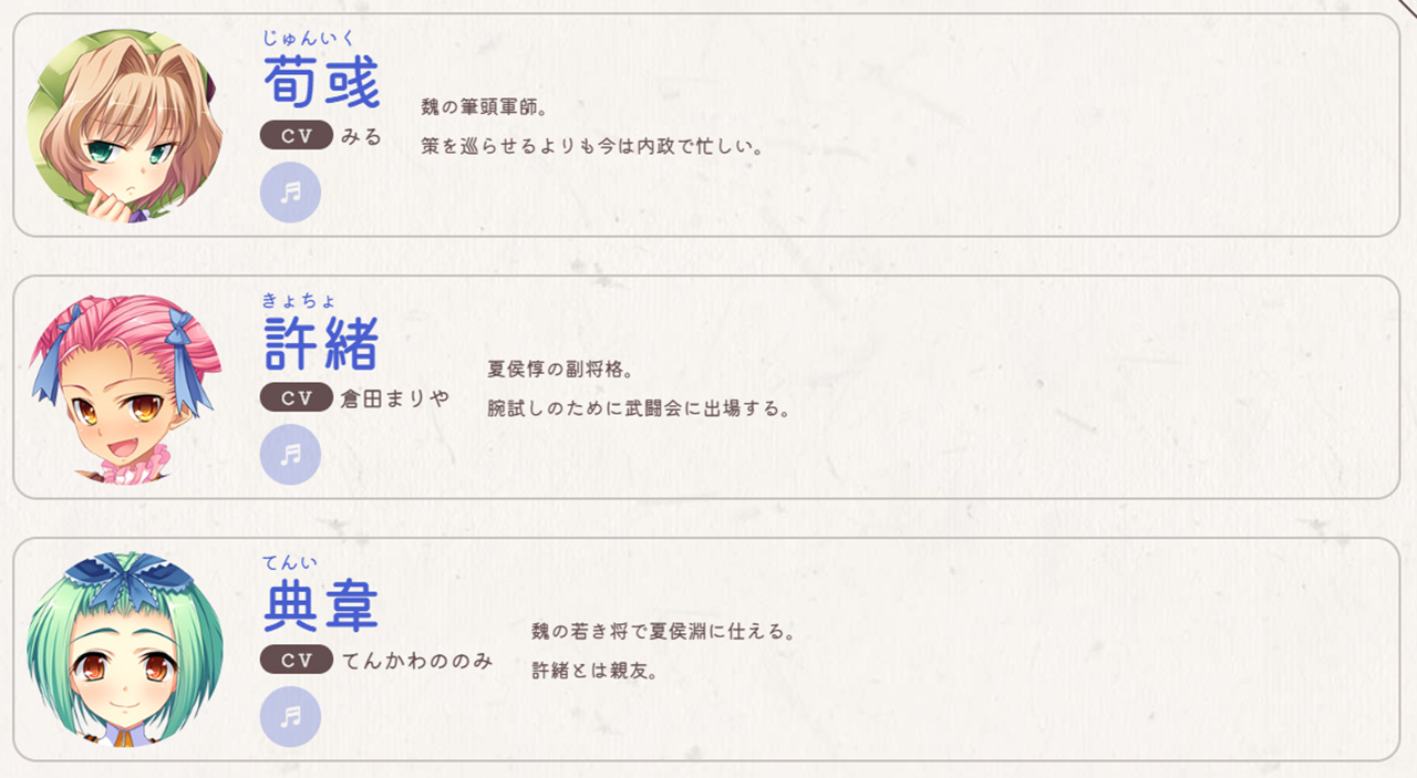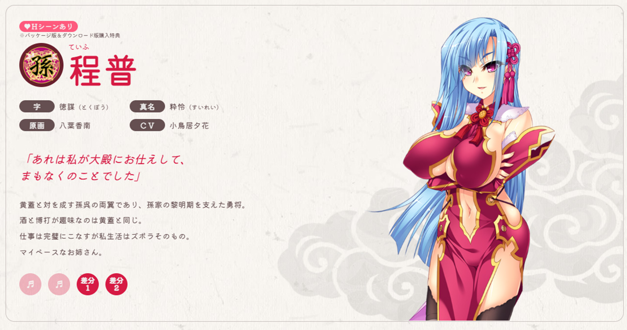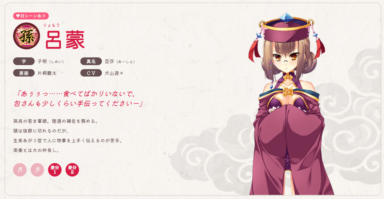 「恋姫†夢想」シリーズといえば、たくさんの姫武将が登場するのも魅力のひとつ。ということで本作でも、メインとなる呉以外に属する武将たちもたくさん登場するようだ。彼女たちが孫三姉妹とどんな絡みを見せるのかにも注目だ!!