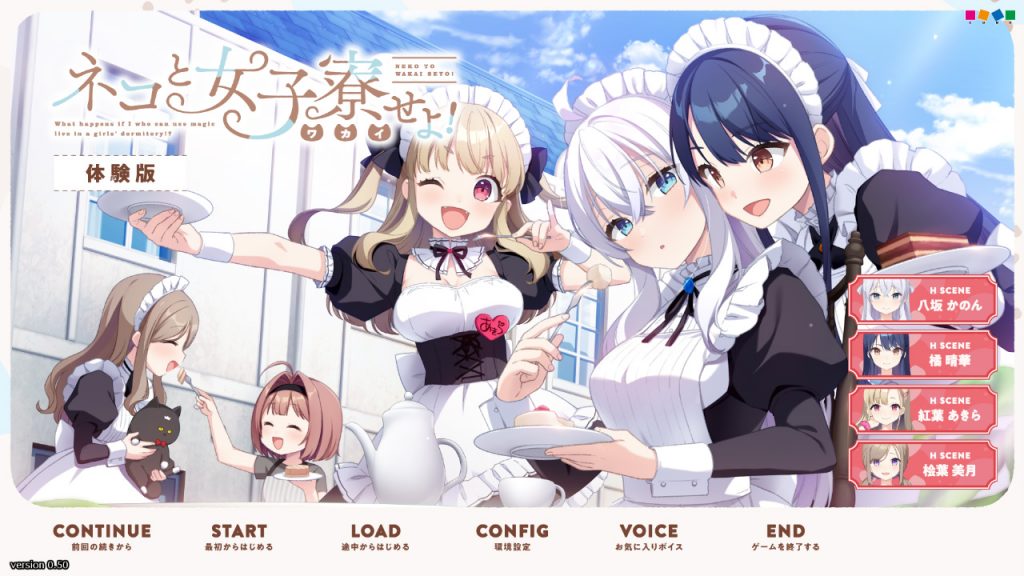 美しょゲーに限らずラノベなんかでも作品タイトルにネタを仕込んだものがありますが、本作『ネコと女子寮せよ!』の場合パッと見はそれほど変(失礼)ではありません。だがしかし「女子寮」の部分は「ワカイ」と読むらしく…つまりネットで見かける「神と和解せよ」の一部を塗りつぶした「ネコと和解せよ」のネタだったりします。って作品タイトルから内容がちっとも連想できない!? いったいどんな物語なのか気になるので、体験版をプレイしてみました!!