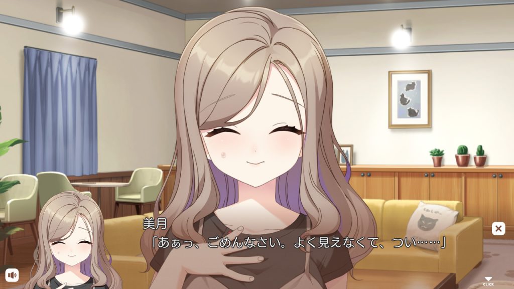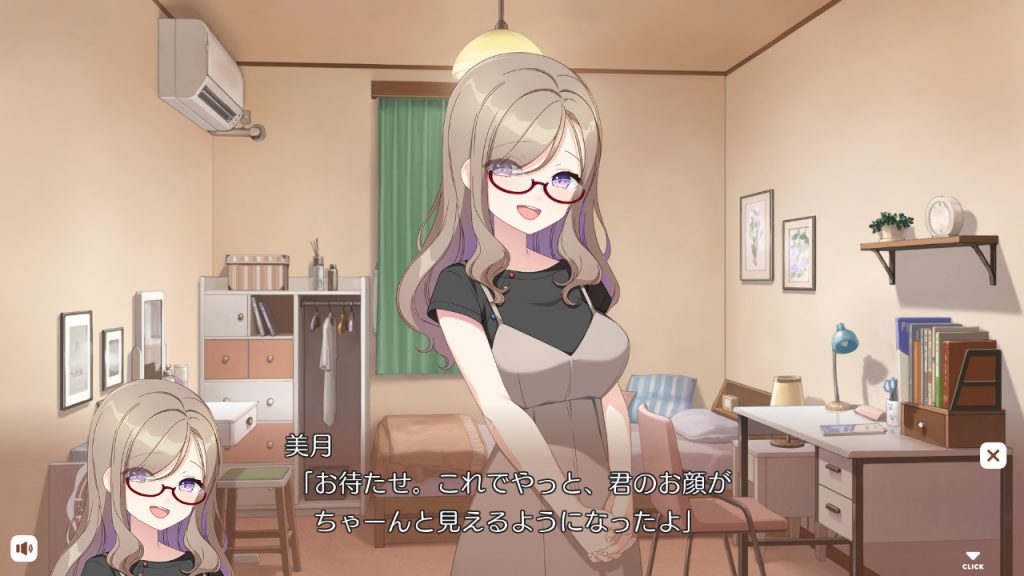 ▲優しい先輩・美月(みつき)。母性本能に溢れ主人公を甘やかしてくる。視力が弱く普段はコンタクトだがたまに眼鏡っ娘に?