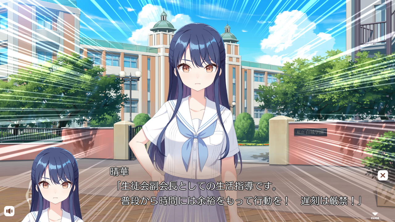 ▲学園に行ったら副会長・晴華がビシッと生活指導!! キリッとした堅物キャラに見えるけど…