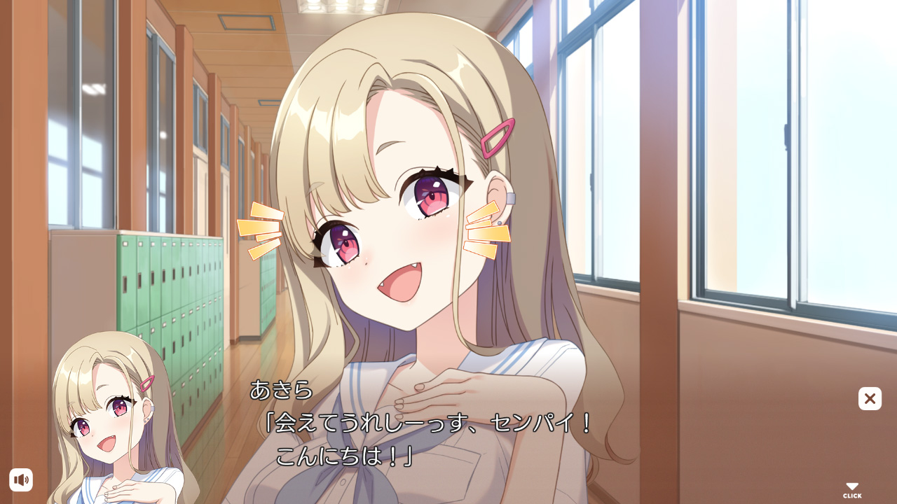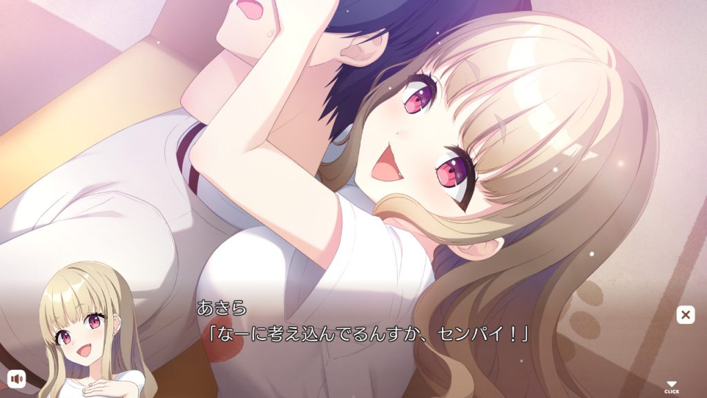 ▲校舎に入るとギャルな後輩・あきらが抱き着きながら挨拶。距離が近い!!