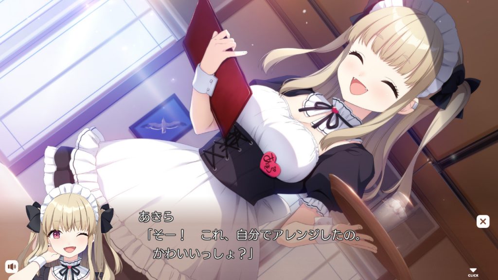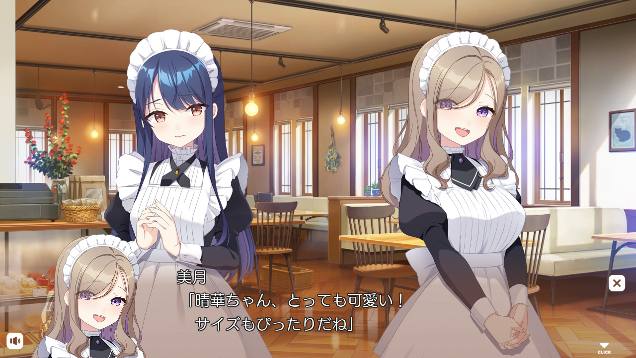 ▲さらにカフェでも働くことに。落ち着いた雰囲気のメイド服が似合っていて可愛い♪