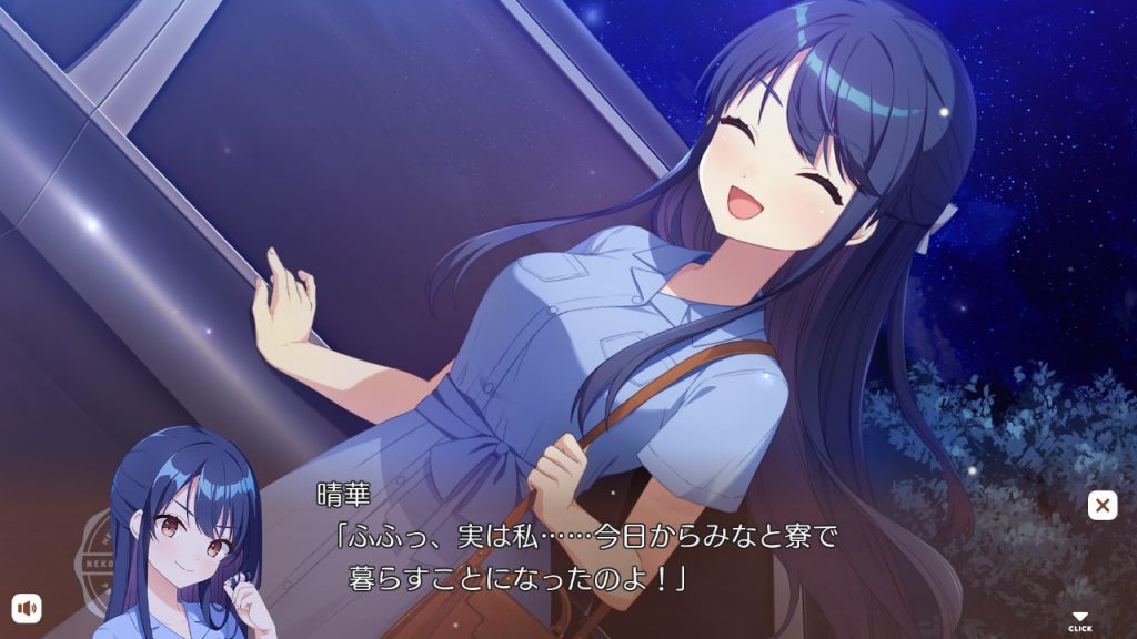 実は主人公…というか双子の妹と従姉も含め八坂家の人間は魔法が使え、それを秘密にしているのですが、人助けのため使った魔法に晴華が気付いてしまった様子。彼女は学園では主人公をチラチラと見て、ついには女子寮に入寮することに!? といった感じで体験版の後半では新たに女子寮にやって来た晴華と、主人公&ヒロインたちの交流がメイン。ここにきて「魔法」というファンタジーな要素が出てきて、普通の学園青春モノとは一味違うストーリー展開になりそうです。というところで体験版は終了…ううむ、先が気になりますね!!
