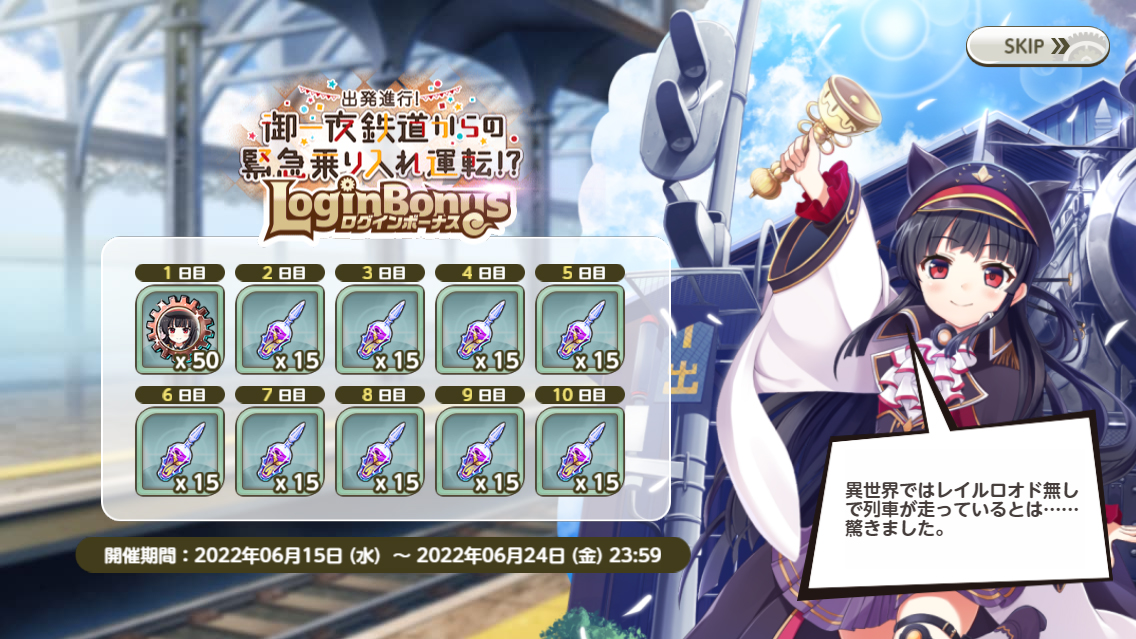 ▲イベント中のログインボーナスでは「Aハチロク[列車を導く者]」が手に入るのだ