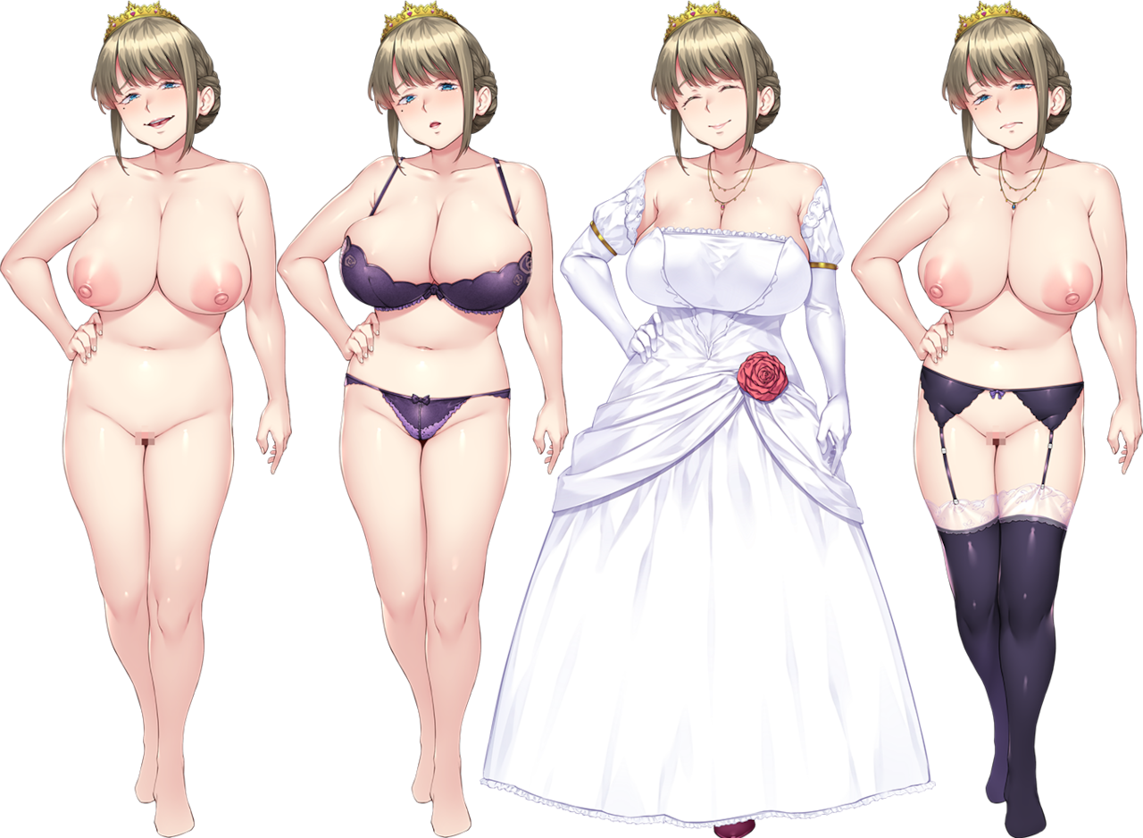 王国に伝わる「支配の王冠」を使って王国に君臨する女王。責任感が強く、王国と臣民を第一に考える魅力溢れる美女。そのお堅そうな性格とは裏腹に、ムッチムチでフェロモンバリバリの成熟しすぎたボディを持つドスケベ年増女。