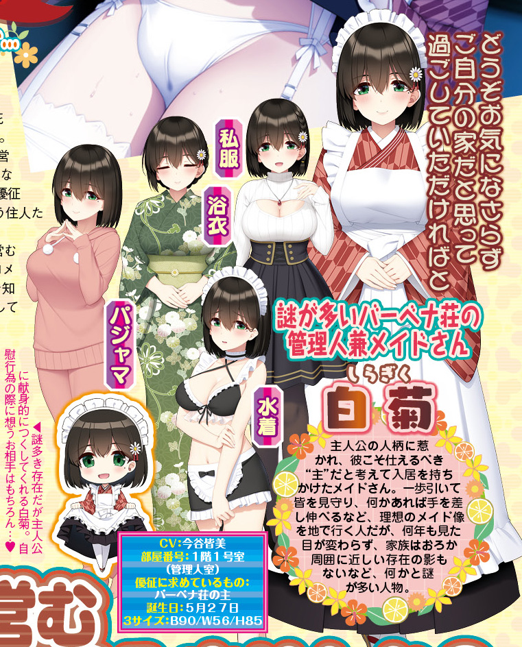 ▲メインヒロインの白菊さん。豊富な衣装差分にも注目だ