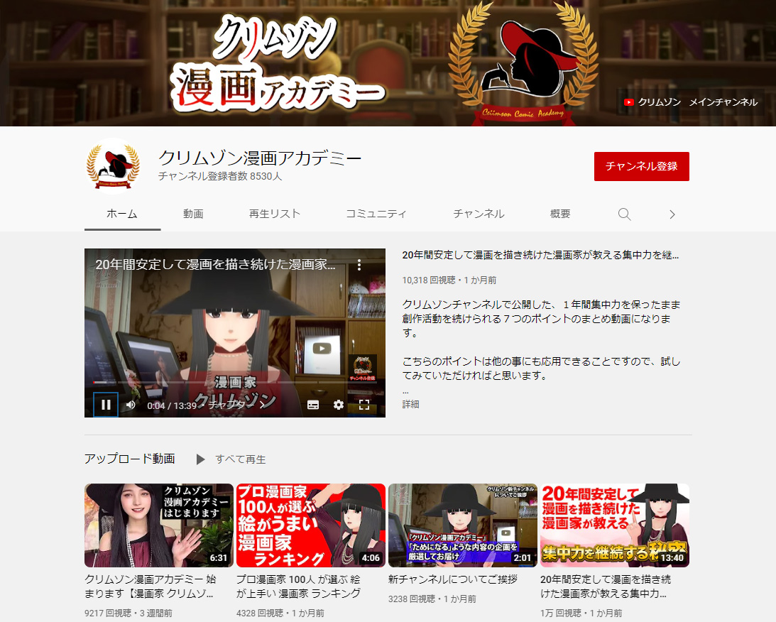 ▲YouTube「クリムゾン漫画アカデミー」は、漫画家の卵ならずとも勉強になる話がいっぱいだ