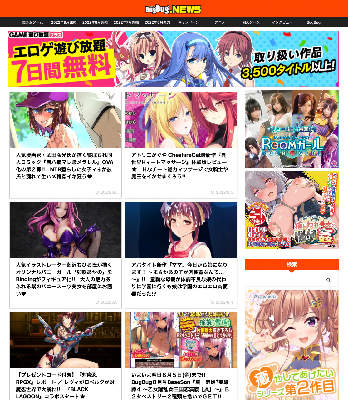 先週のPV上位はおなじみ『対魔忍』のほか家庭用ゲーム機で人気を博したあの作品が18禁として帰ってきた記事も!! BugBug.NEWS・6/18〜6/24の人気記事ランキング