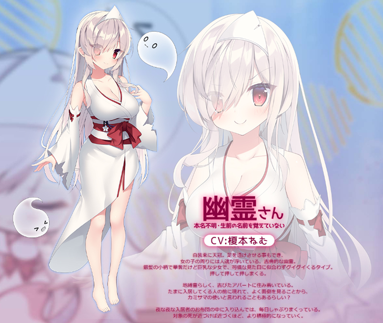 パッケージ版にのみ、幽霊さん抱き枕カバーセット版が同日発売されることが決定!! 白装束を脱ぎかけている幽霊さんのとってもエロかわいい姿がプリントされた数量限定生産のアイテムなので、絶対に欲しい人は早めに予約してね。この機会を逃すと、二度目のチャンスはないかもしれないぞ!!