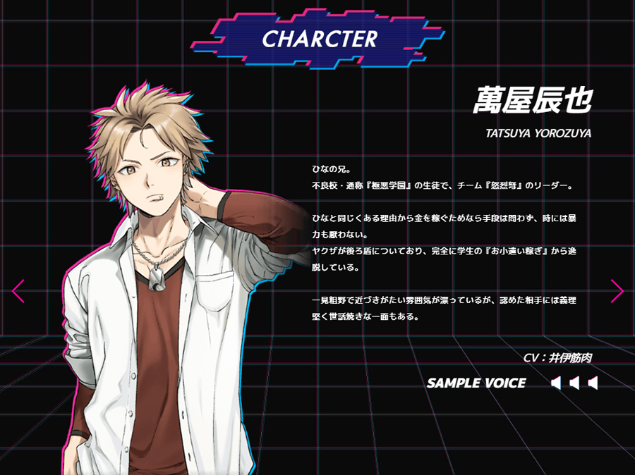 ▲ひなと同じ理由で、金を稼ぐためには手段を選ばない男。暴力もいとわないが、認めた相手には義理堅く世話焼きな一面を見せる