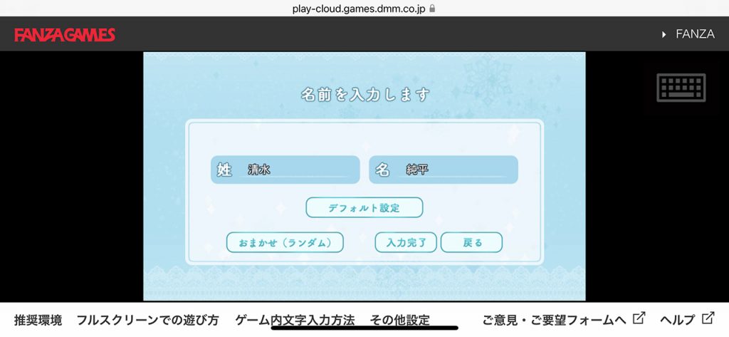 ▲本作は主人公の名前を変更可能。画面右上のキーボードアイコンをタップすれば文字が打てるようになる