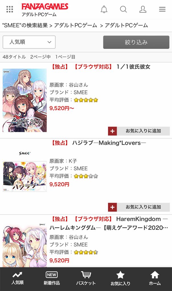 ▲ブランド名「SMEE」を検索。すると『1/1彼氏彼女』が出てくる