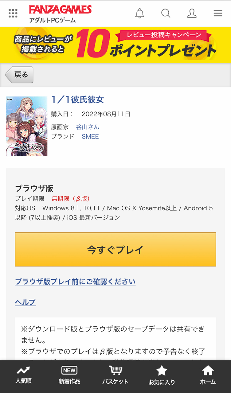 ▲購入したい作品サイトに飛んだらプレイ環境の確認をしたうえで購入手続きに進もう