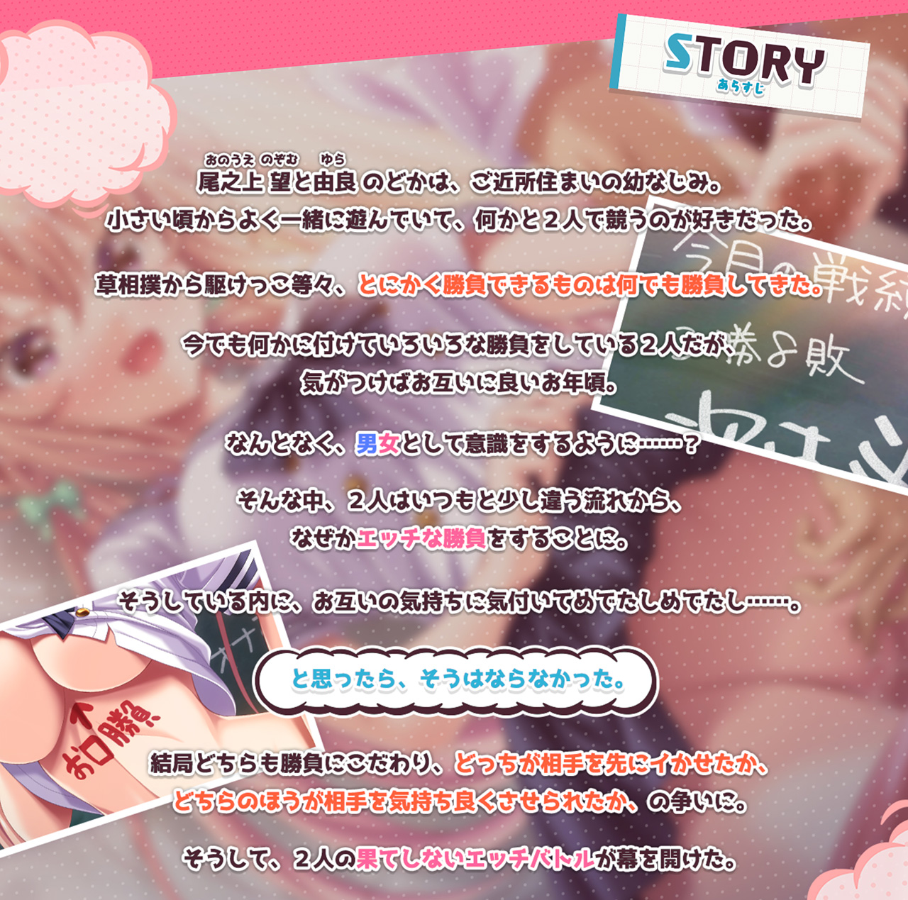 幼なじみとエッチしてハッピーエンド…とはならない!? 幼い頃からのライバル心が互いに燃え上がり、どちらが上かエッチで白黒つけるしかない♥