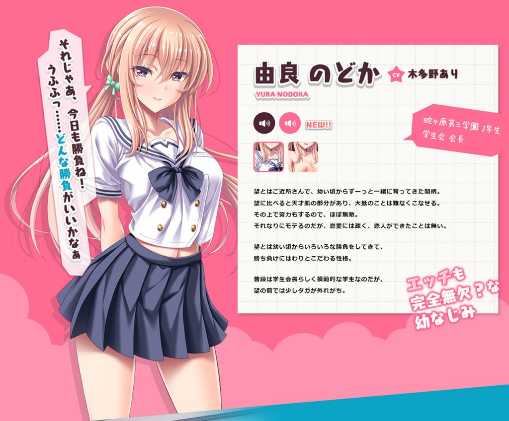 コンセプトが明確なロープライスの抜きゲーをリリースしてユーザーから高評価を受けているGuilty Dashの最新作が、この『俺と幼なじみの果てしないエッチバトル』だ。昔から何事も競い合ってきた幼なじみの男女が、年頃になって挑む新たな戦いが「エッチ」という、ありそうでなかったエロ妄想を具現化してくれた作品だぞ。今回は公式サイトの情報をベースに、本作の魅力に迫る!!