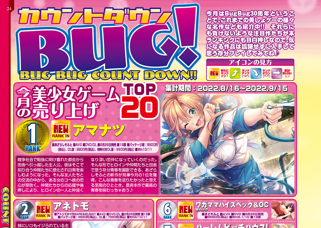 “月末エロゲの日”に発売される新作が多数ランクイン!! ストレートにエロい記事のほか性転換モノも大人気♥ BugBug.NEWS・9/17〜9/23の人気記事ランキング