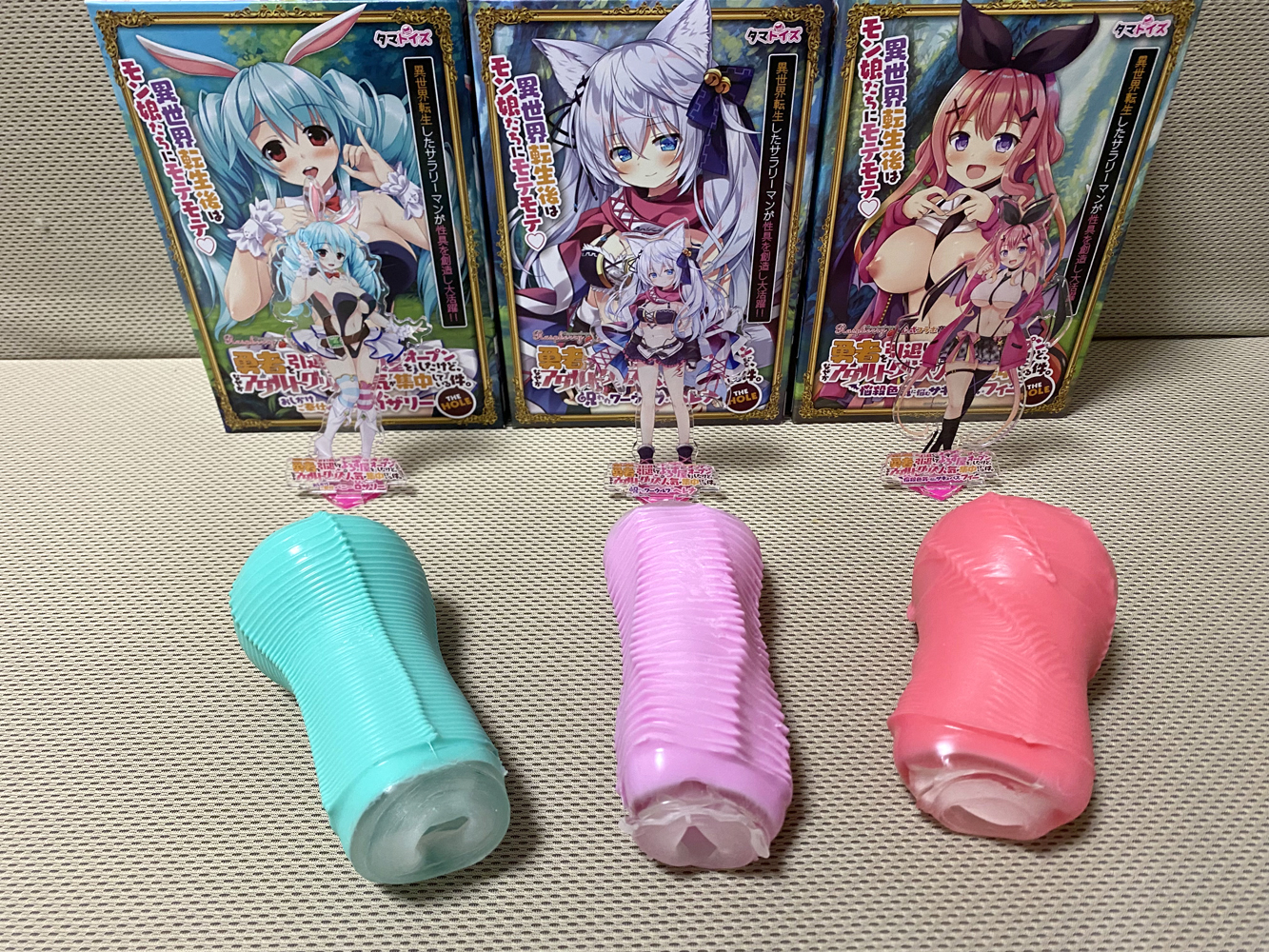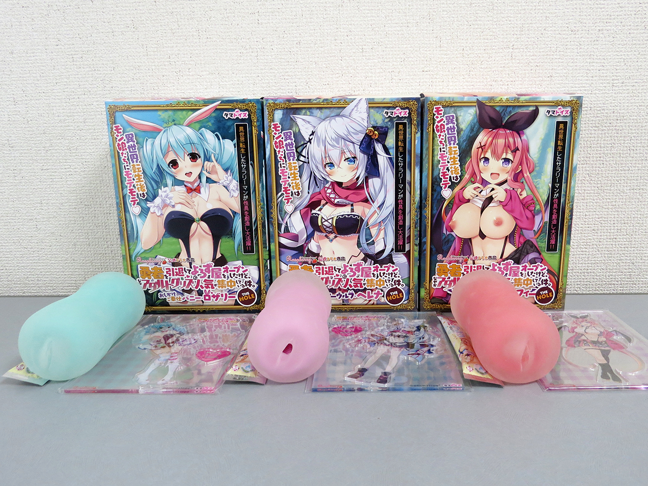 原作ゲームは、異世界で万屋を開業した元勇者が、創造スキルを活かした“性具”を使って、モンスター娘たちの種族特有の悩みを解決していくAVG。今が流行りのなろう系異世界ファンタジーだ。タイトルどおりそもそも「アダルトグッズ」が作品でキーアイテムとして登場する作品なので、タマトイズとのコラボの相性もバッチリ♪ しかも一挙に3ヒロイン分のアイテムをリリースするというので、これは是非3つの具合を比較したくなりますねぇ。