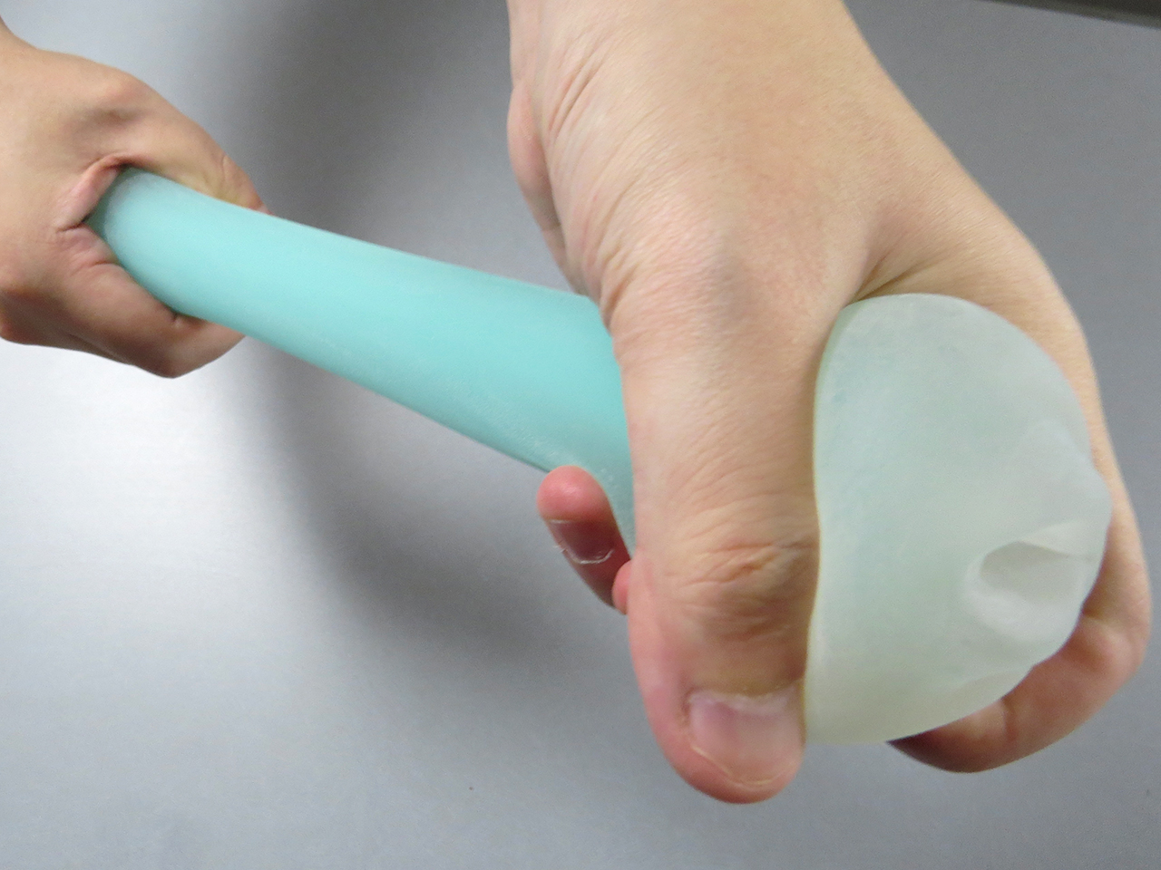 手に取ってみると、最初はサラッとした手触りだが、よく触ってみるとムニムニと柔らかく、手に吸い付くよう。3つとも同じ似たような感触で、半透明だからか高級和菓子の水羊羹を思い起させる。また嬉しかったのが、ホコリが非常に付きにくい素材なこと。オナホを長く使うことを考えると、ベタつかなくてホコリもつかないというだけで、かなり便利になる。ユーザーライクなタマトイズならではの高品質さだろう。