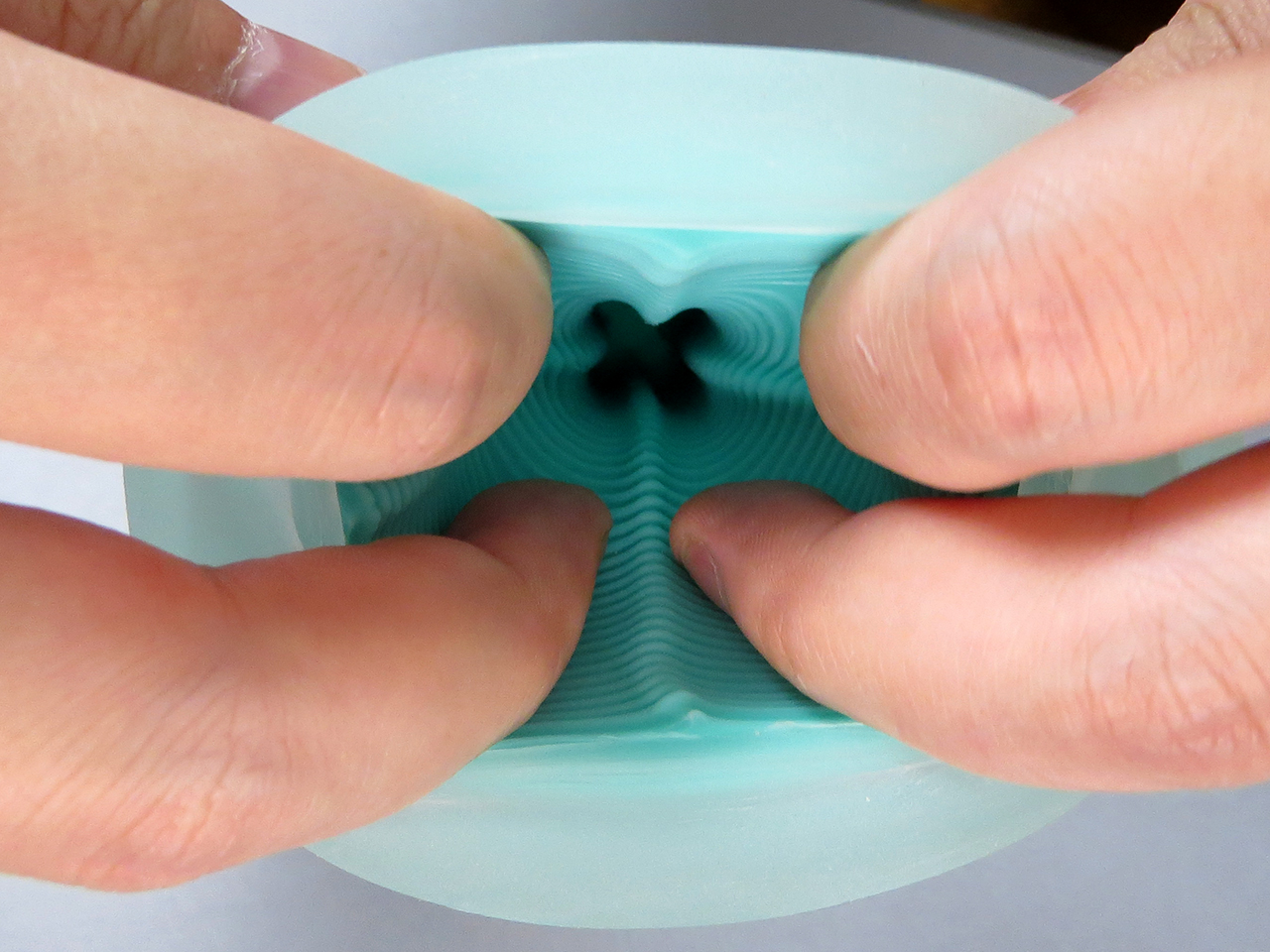 物語が大好きなサキュバス・フィーの内部は、より細かい肉ヒダが間隔も狭くビッシリと敷き詰められている。その細かいギザギザが捻じれた渦巻き模様を描き、奥へと収斂していくのだ。中の質感はこちらもハードで、細かいギザギザがまるで大根下ろし器のように、竿全体をジョリジョリ剃り上げる。そこに全体の捻じれた構造も加わり、ホール全体が生き物のように絡みつくのだ。